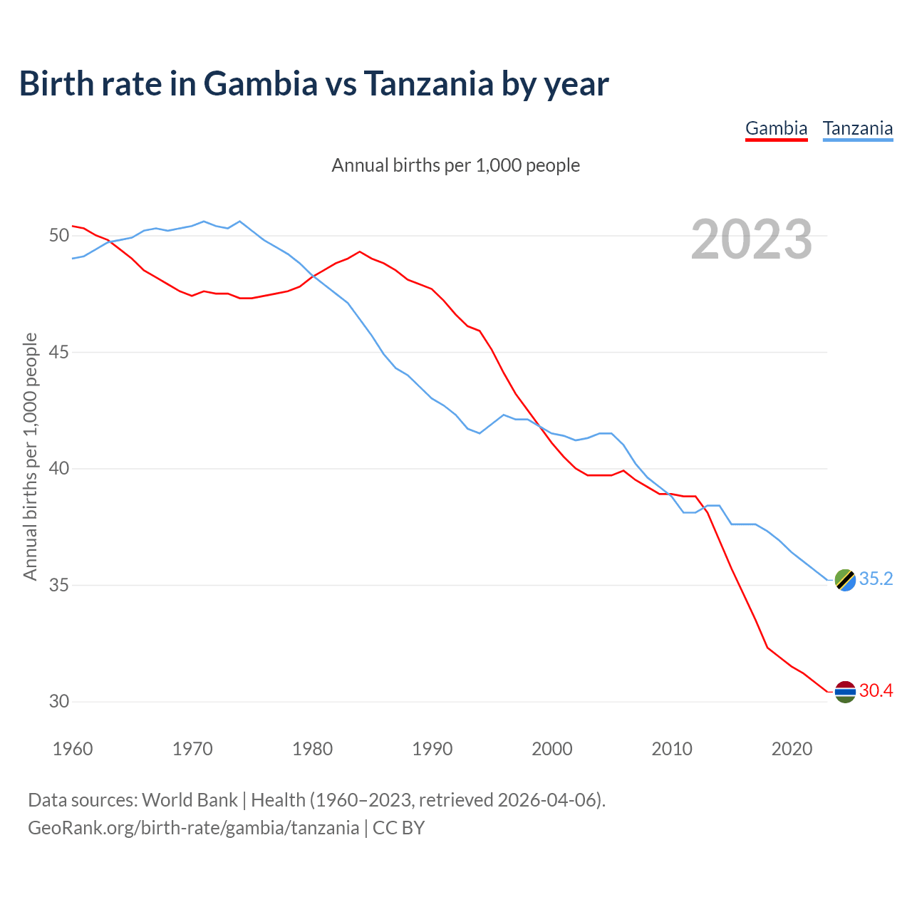 GeoRank.org/birth-rate/gambia/tanzania | CC BY