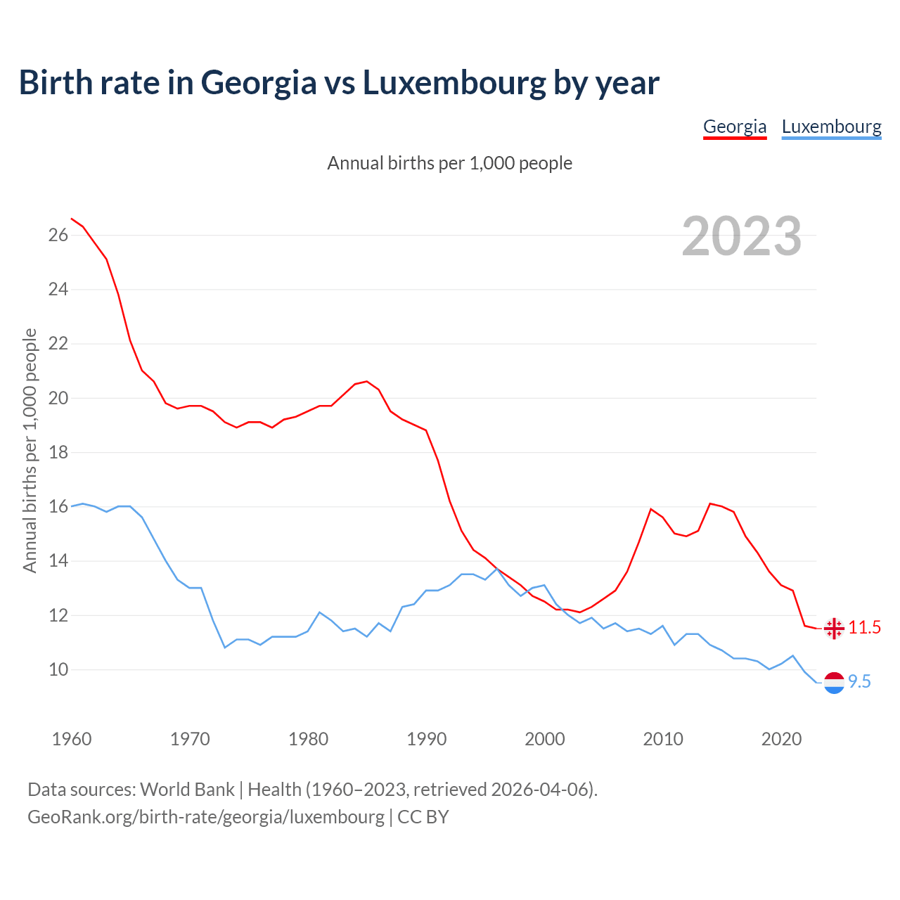 GeoRank.org/birth-rate/georgia/luxembourg | CC BY