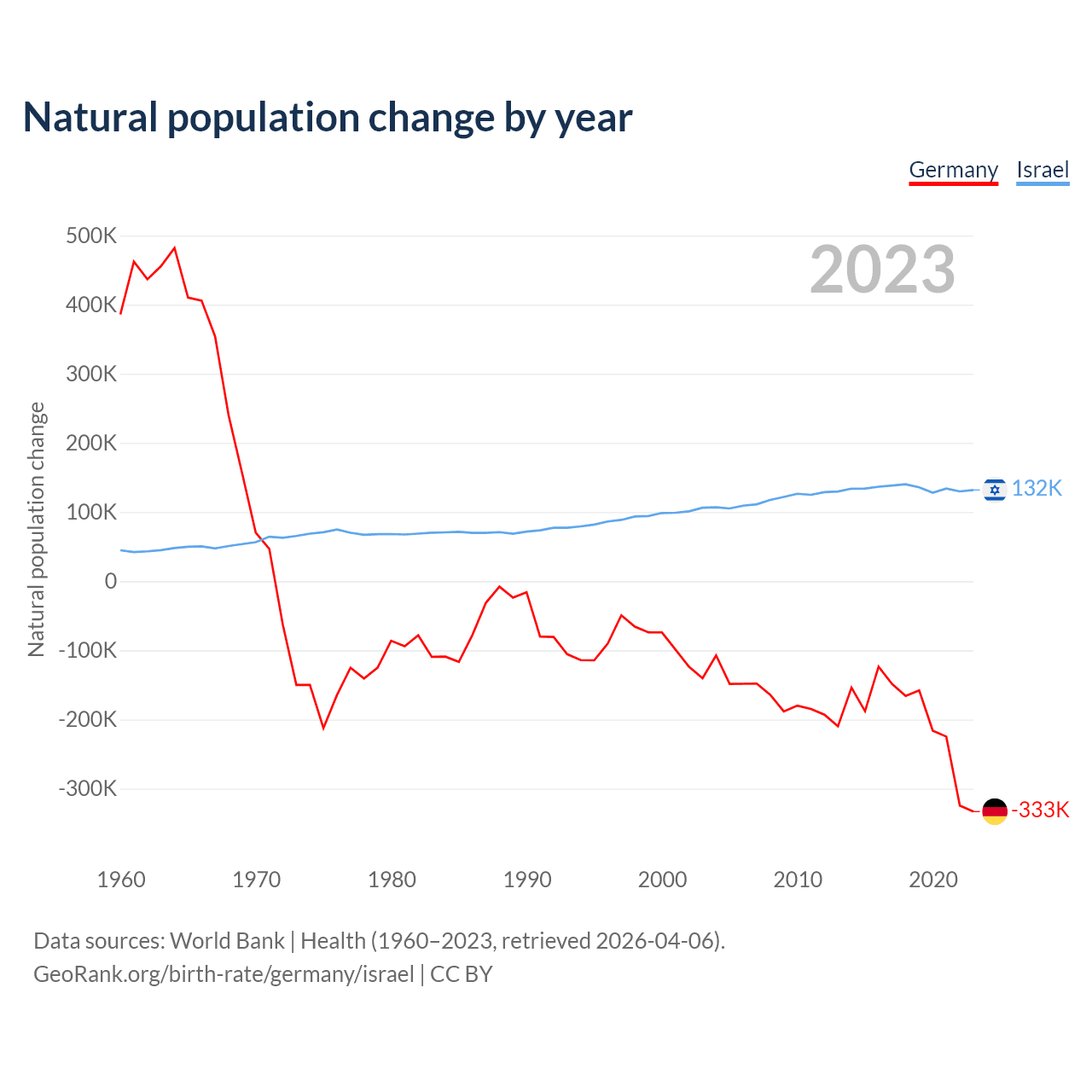 - Germany is ranked 172/196 by birth rate compared to 83/196 for Israel.