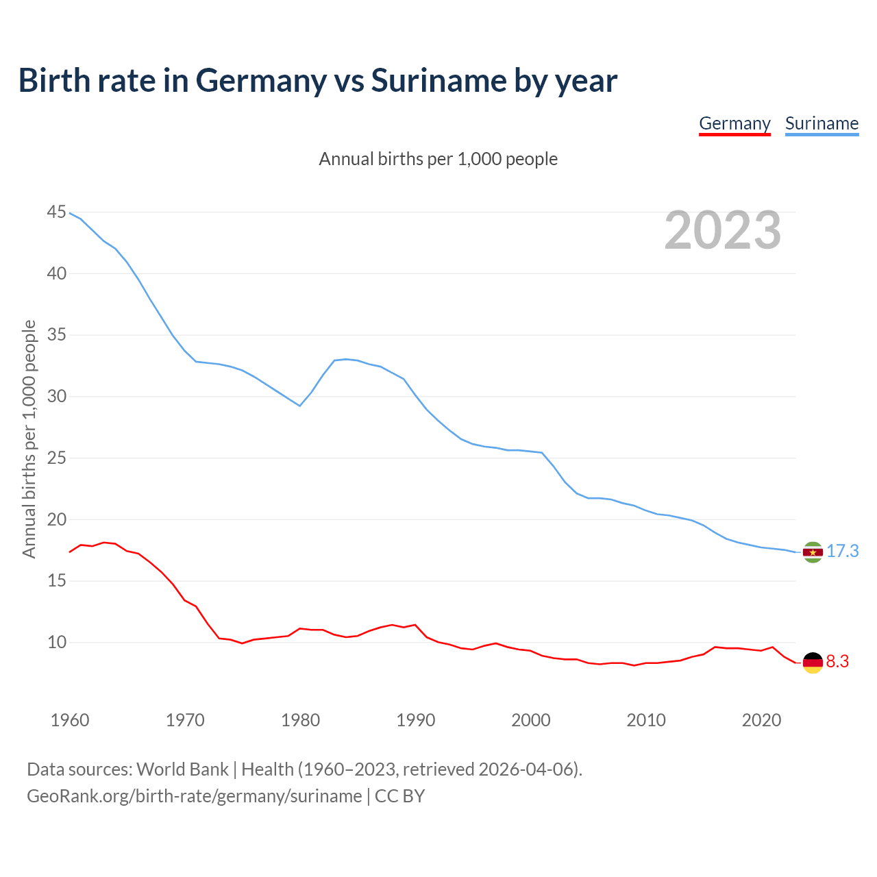 GeoRank.org/birth-rate/germany/suriname | CC BY