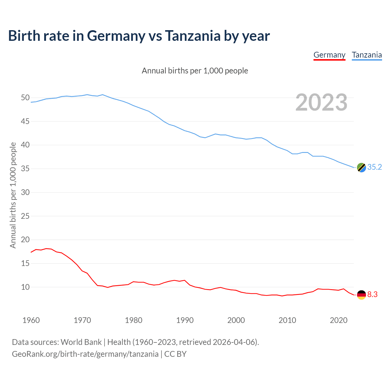 GeoRank.org/birth-rate/germany/tanzania | CC BY