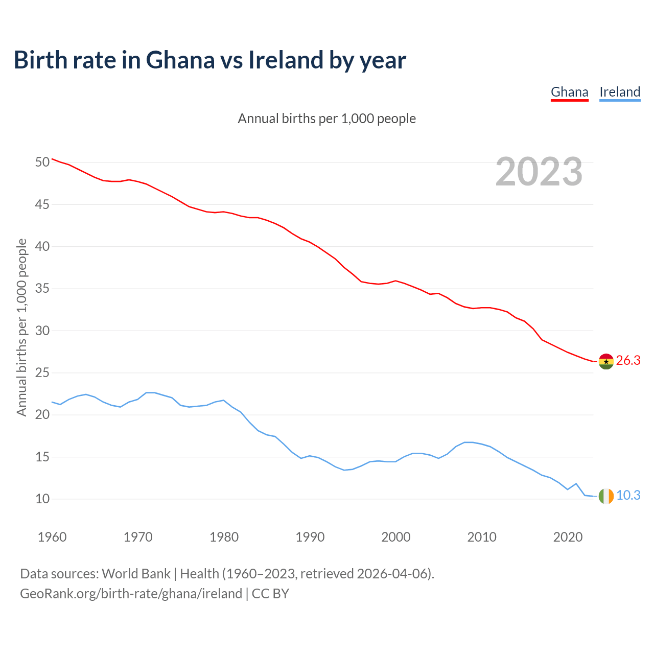 GeoRank.org/birth-rate/ghana/ireland | CC BY