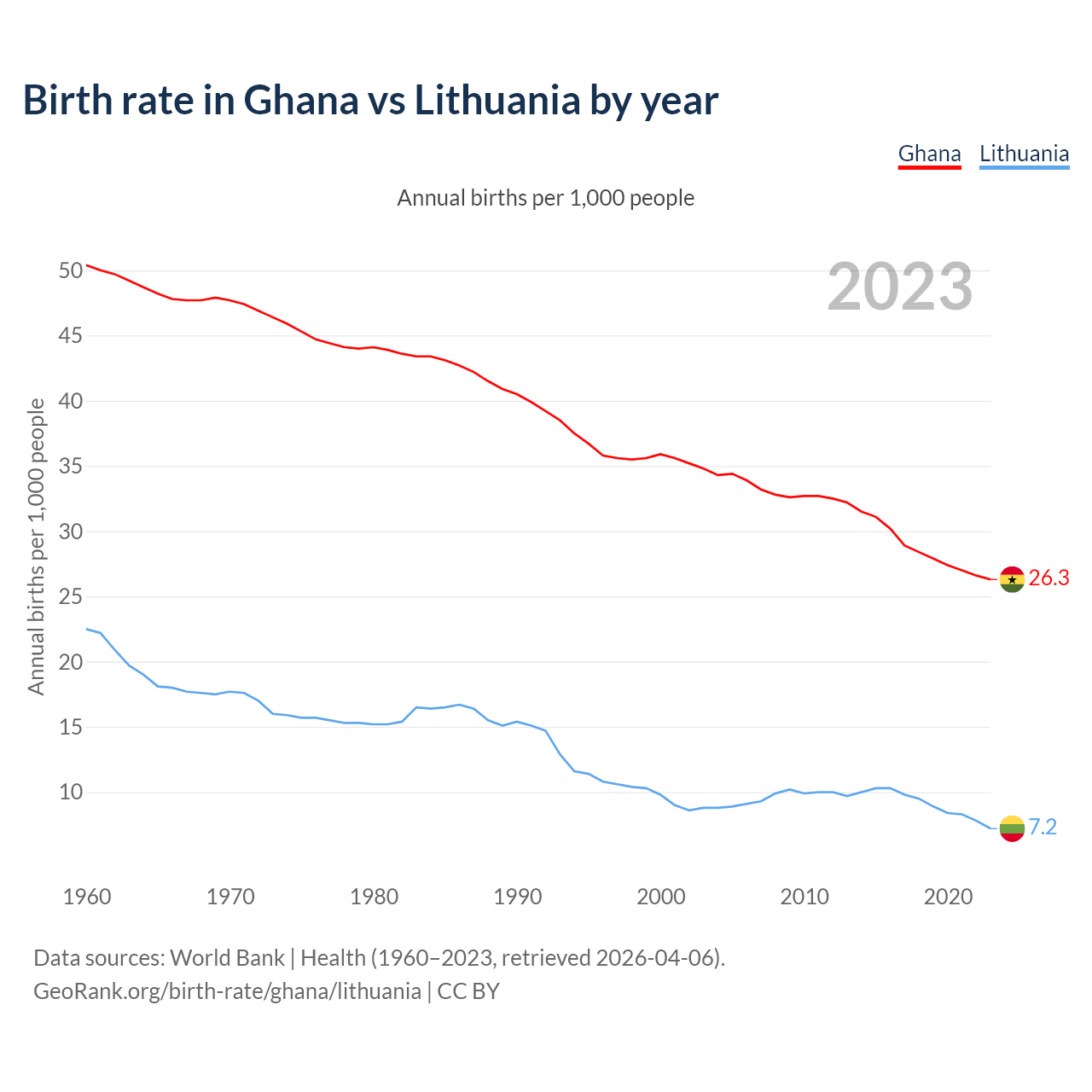 GeoRank.org/birth-rate/ghana/lithuania | CC BY