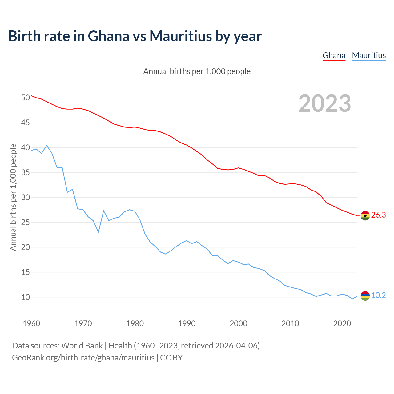 GeoRank.org/birth-rate/ghana/mauritius | CC BY