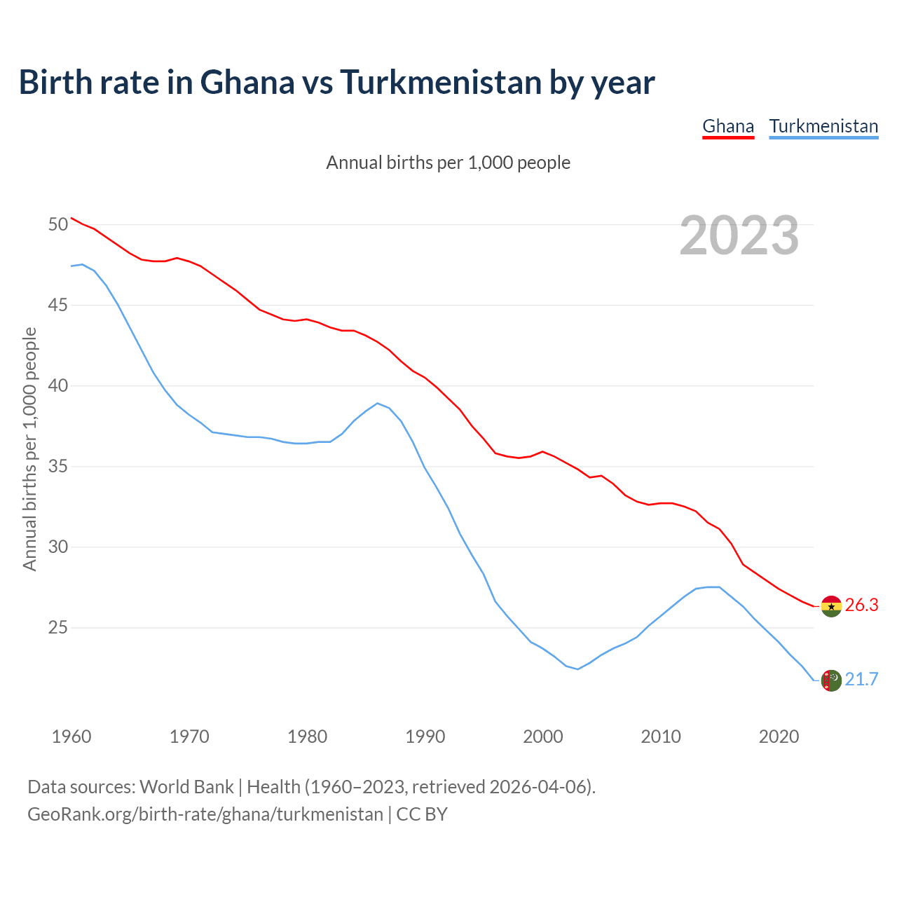 GeoRank.org/birth-rate/ghana/turkmenistan | CC BY