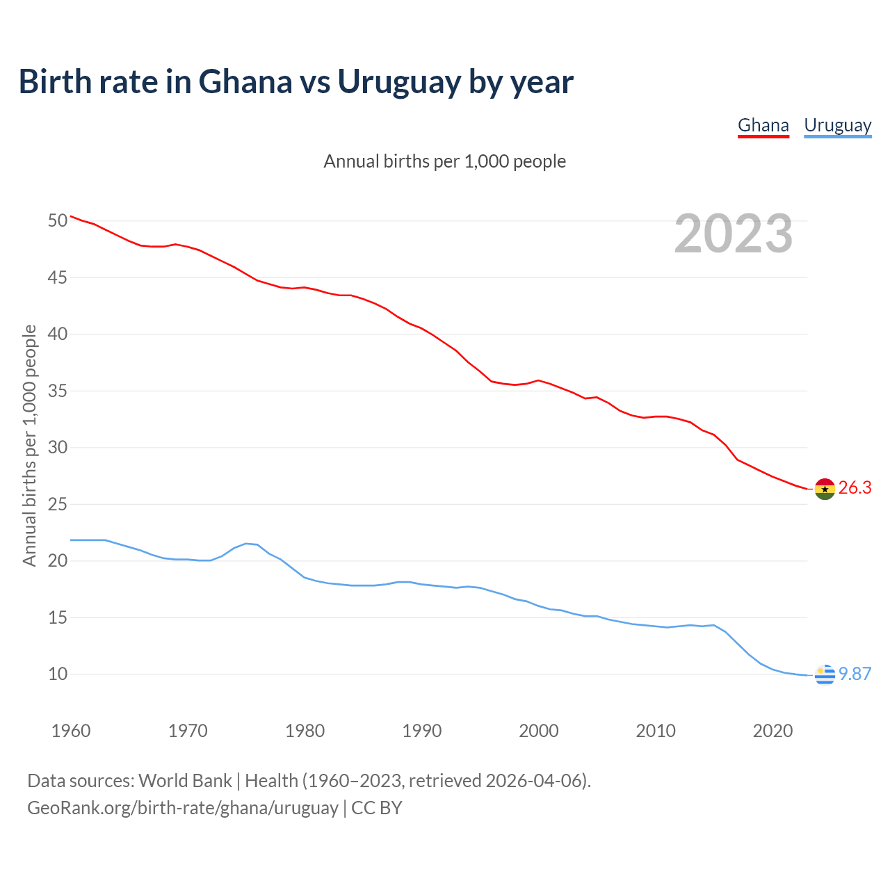 GeoRank.org/birth-rate/ghana/uruguay | CC BY