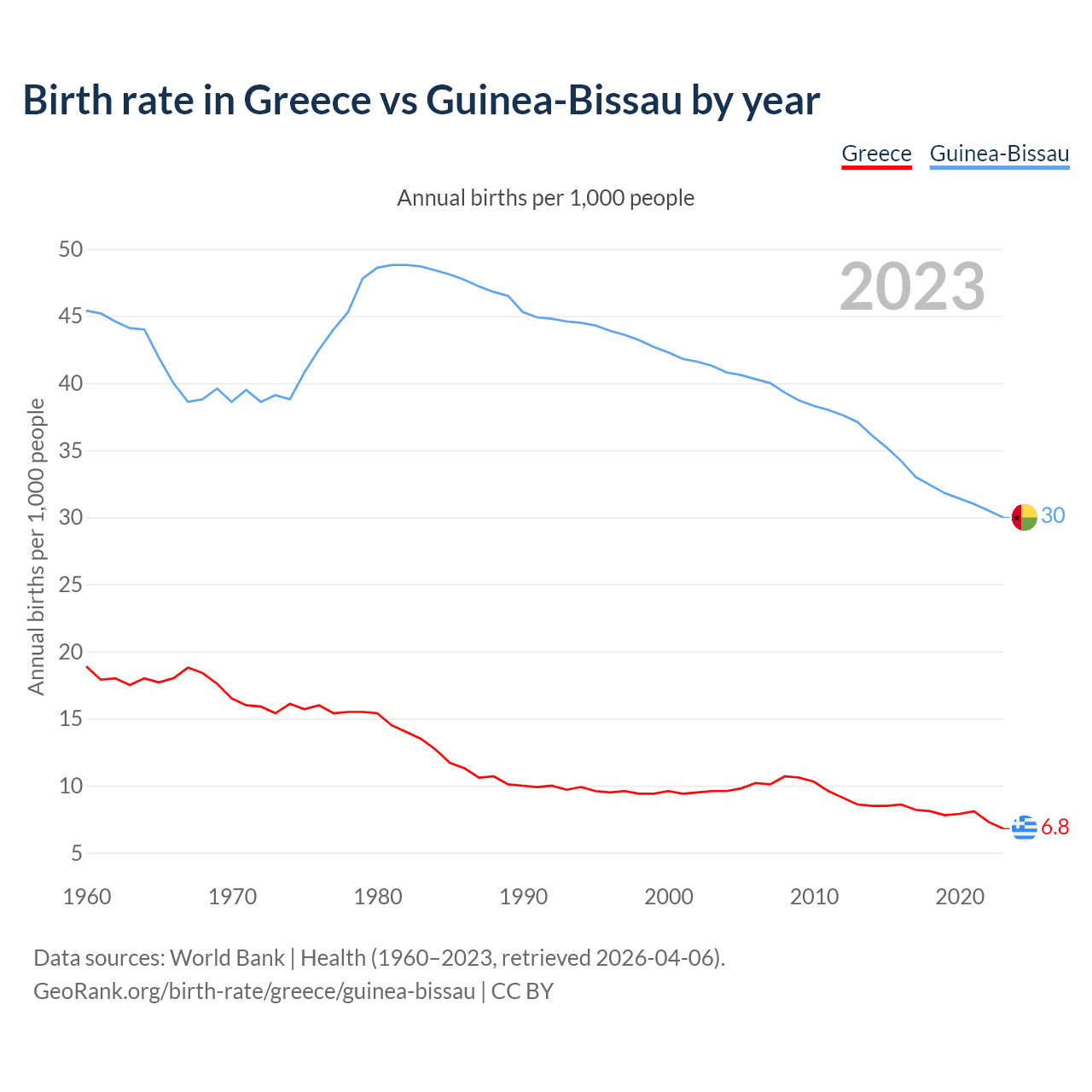 GeoRank.org/birth-rate/greece/guinea-bissau | CC BY