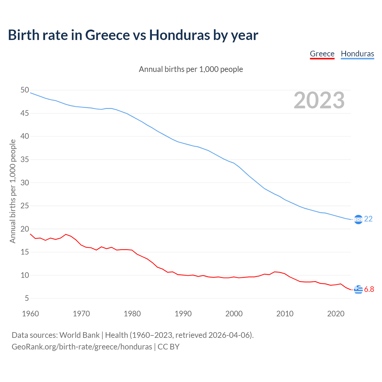 GeoRank.org/birth-rate/greece/honduras | CC BY