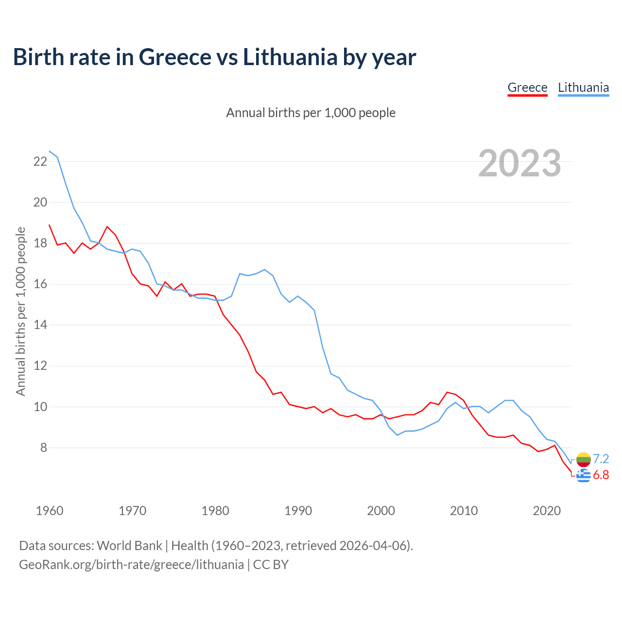 GeoRank.org/birth-rate/greece/lithuania | CC BY