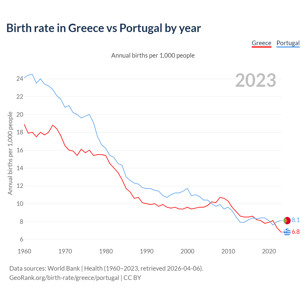 GeoRank.org/birth-rate/greece/portugal | CC BY