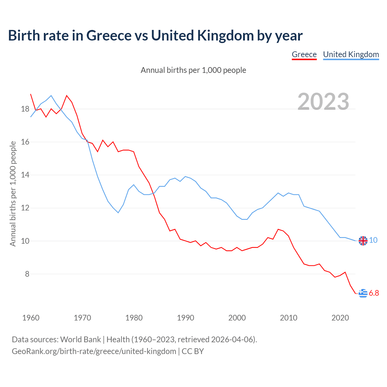 GeoRank.org/birth-rate/greece/united-kingdom | CC BY
