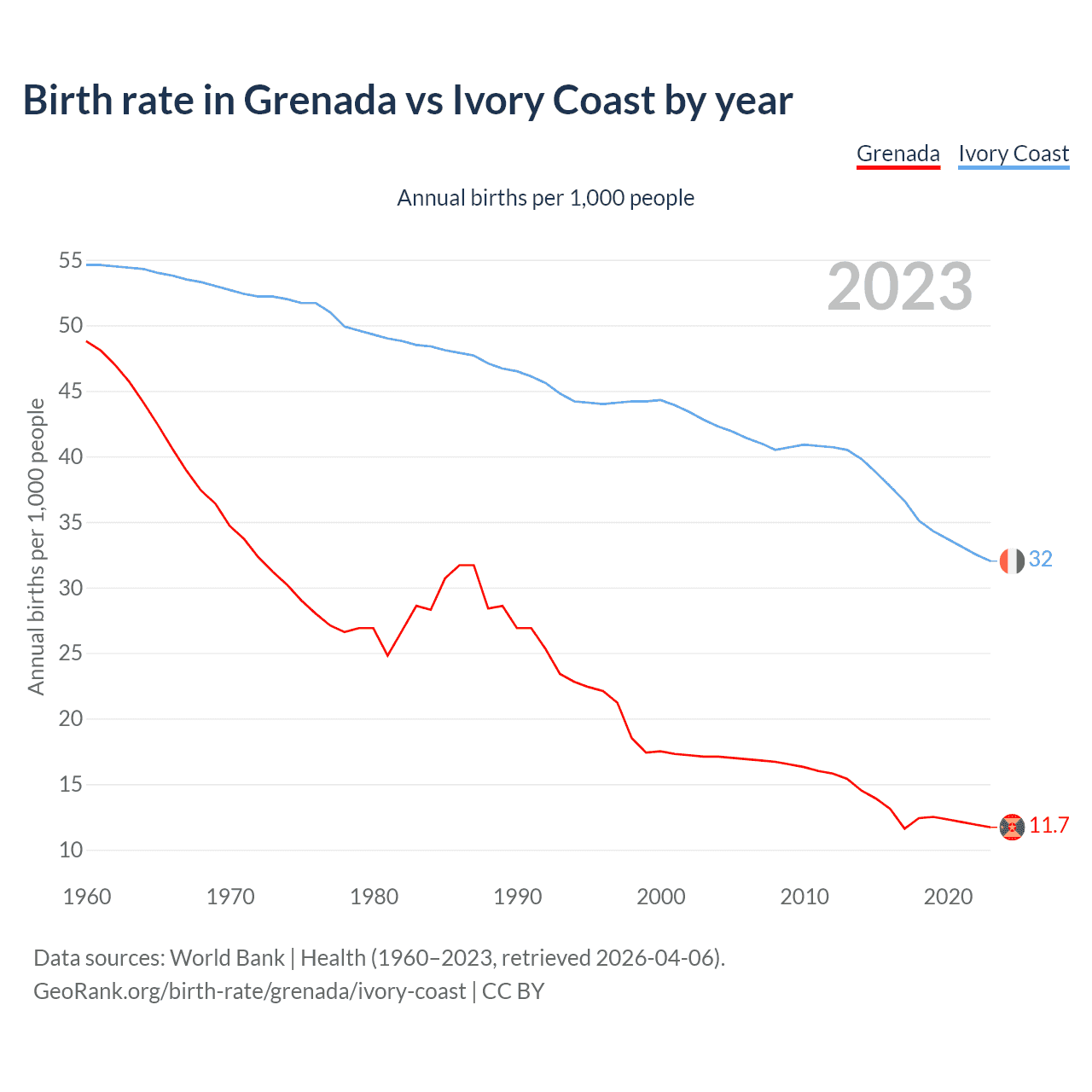 GeoRank.org/birth-rate/grenada/ivory-coast | CC BY