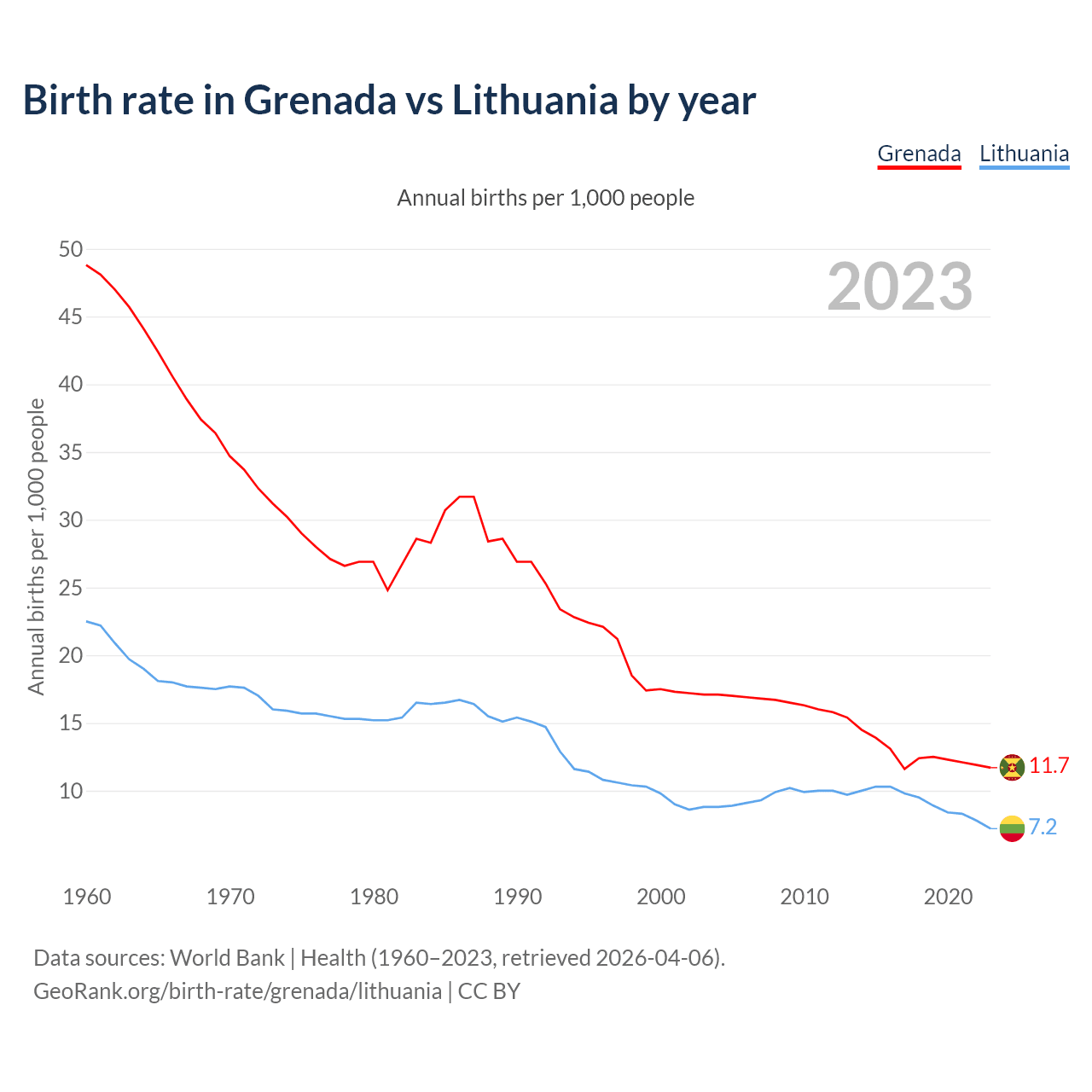 GeoRank.org/birth-rate/grenada/lithuania | CC BY