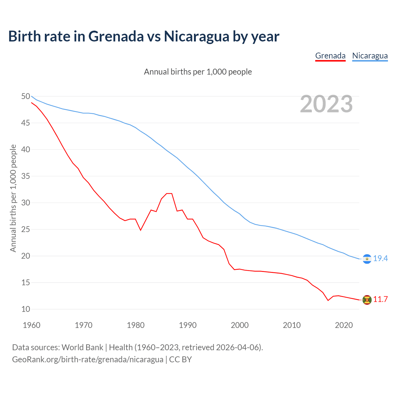 GeoRank.org/birth-rate/grenada/nicaragua | CC BY