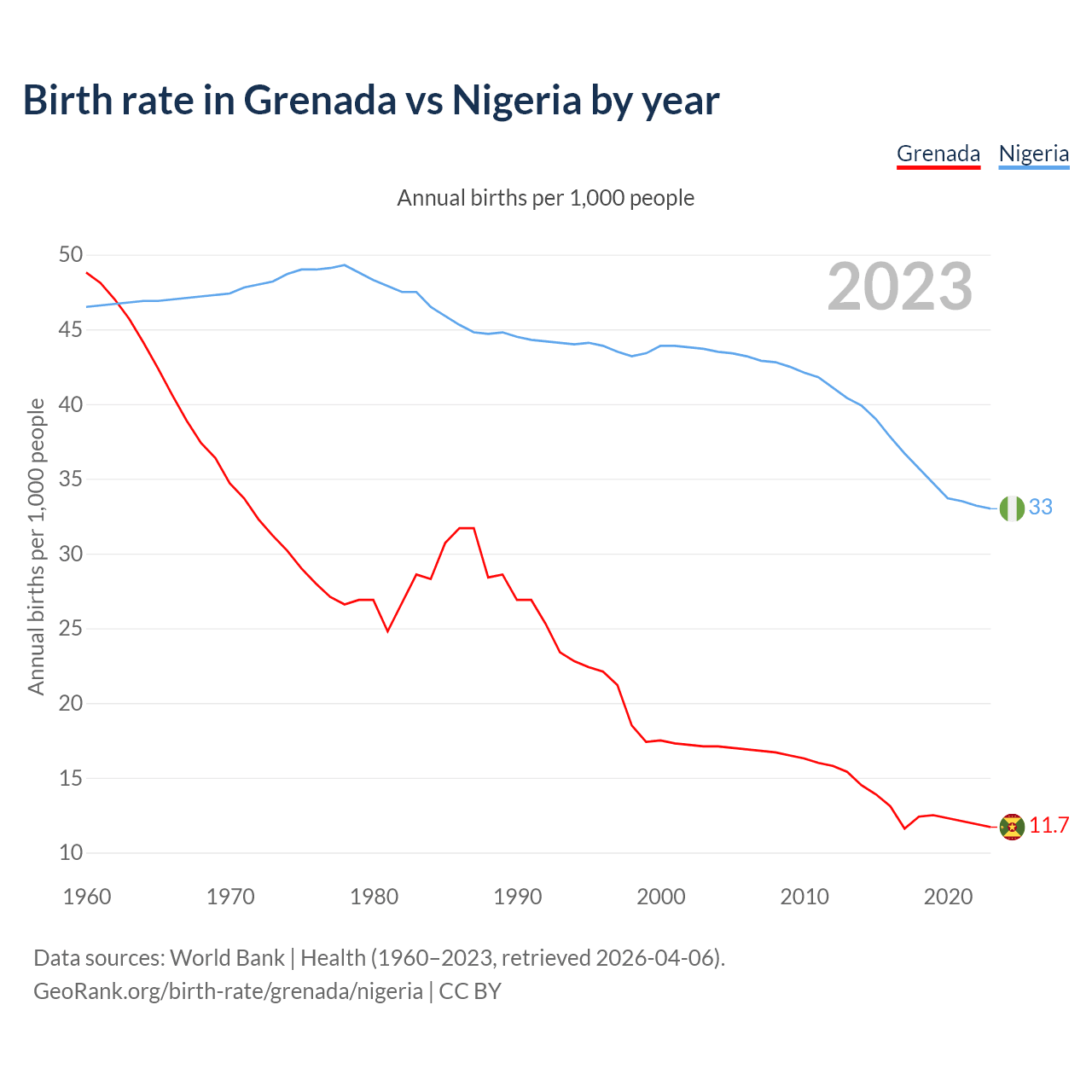 GeoRank.org/birth-rate/grenada/nigeria | CC BY
