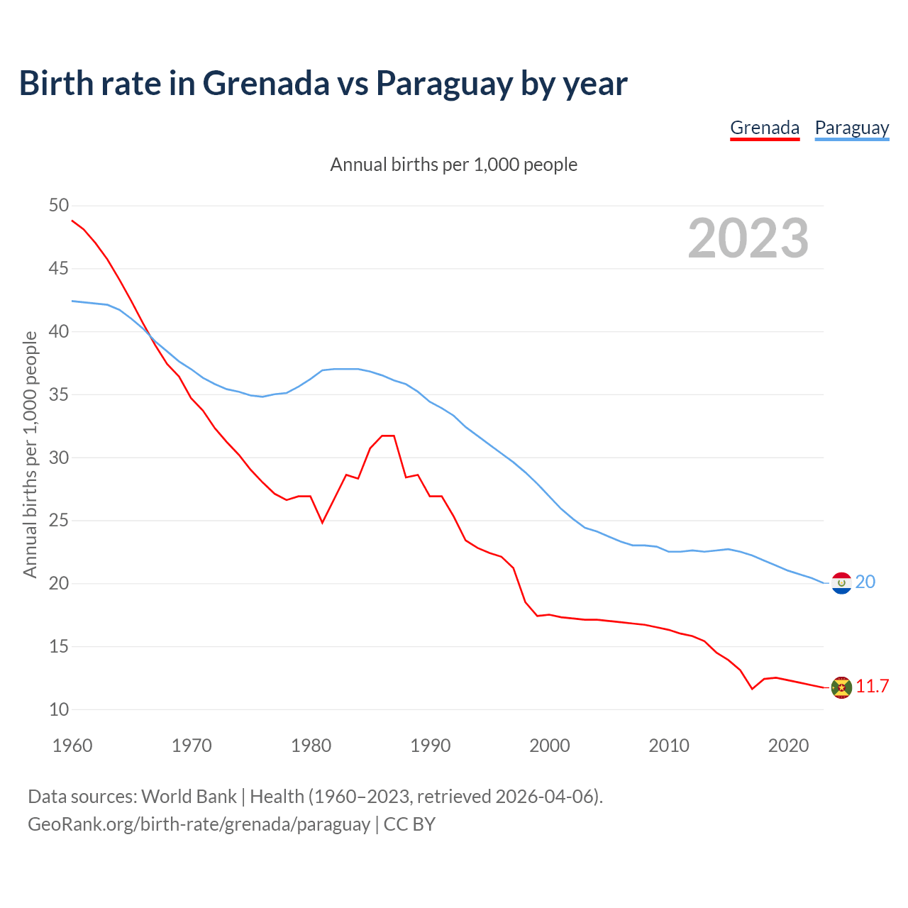 GeoRank.org/birth-rate/grenada/paraguay | CC BY