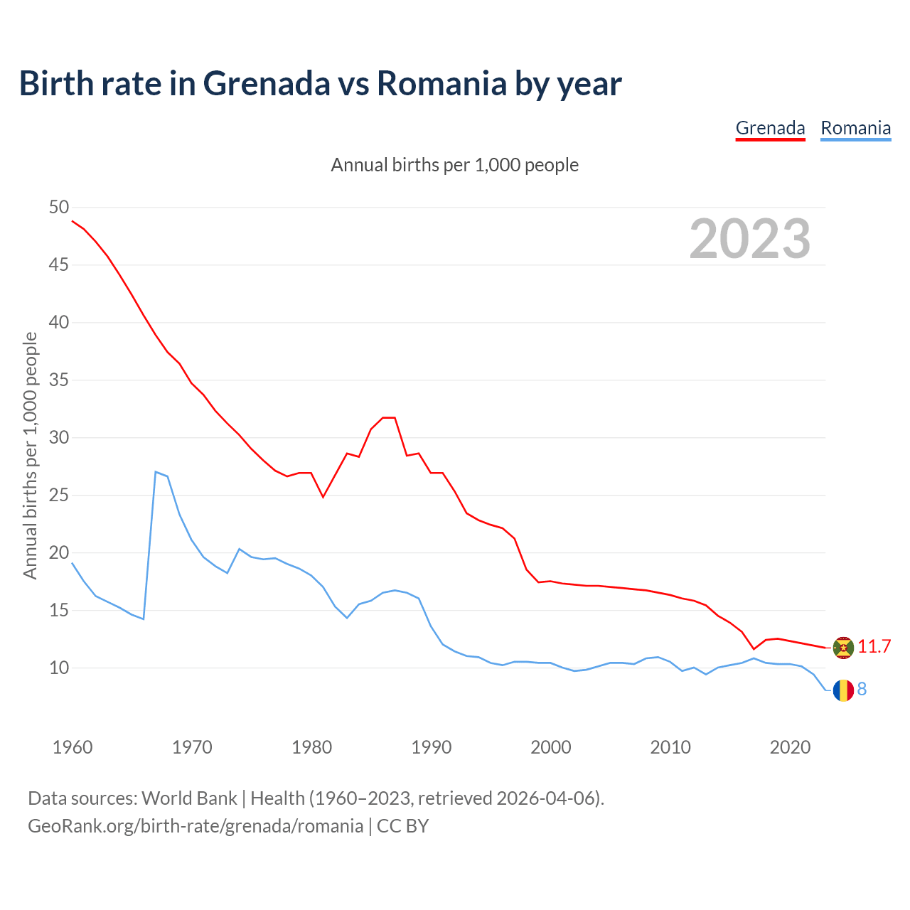 GeoRank.org/birth-rate/grenada/romania | CC BY