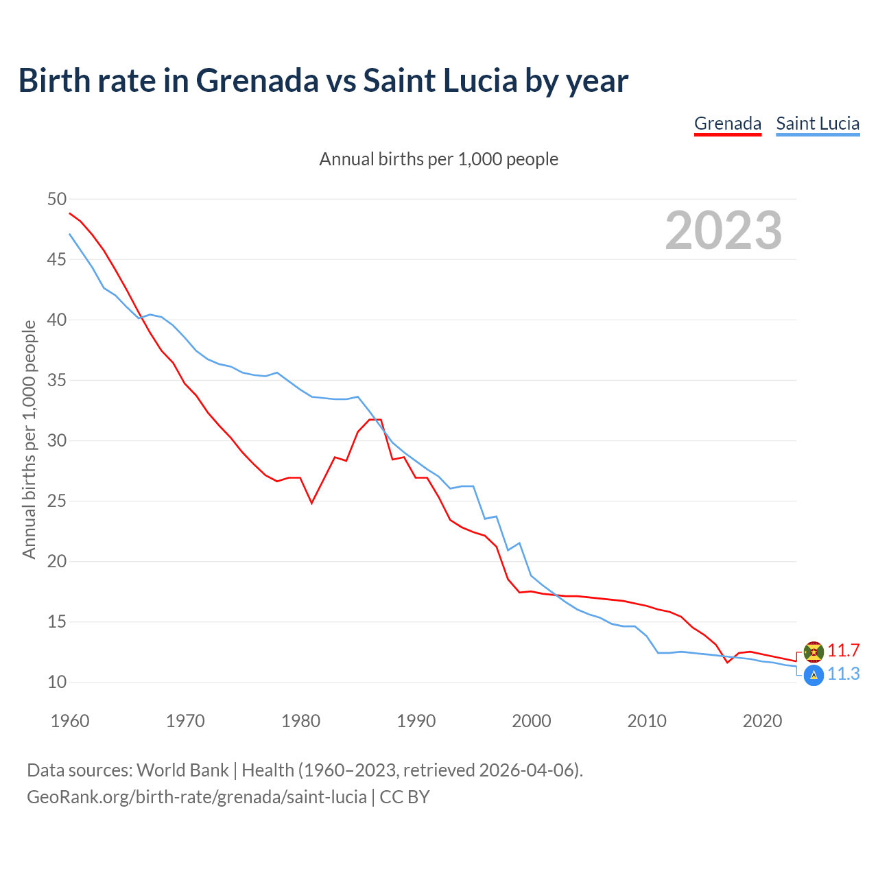 GeoRank.org/birth-rate/grenada/saint-lucia | CC BY