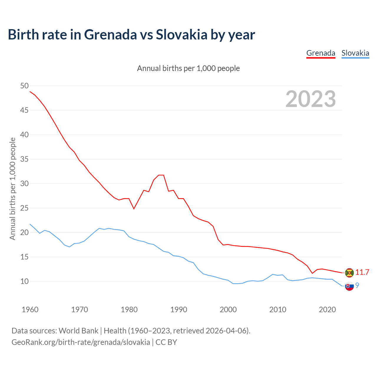 GeoRank.org/birth-rate/grenada/slovakia | CC BY