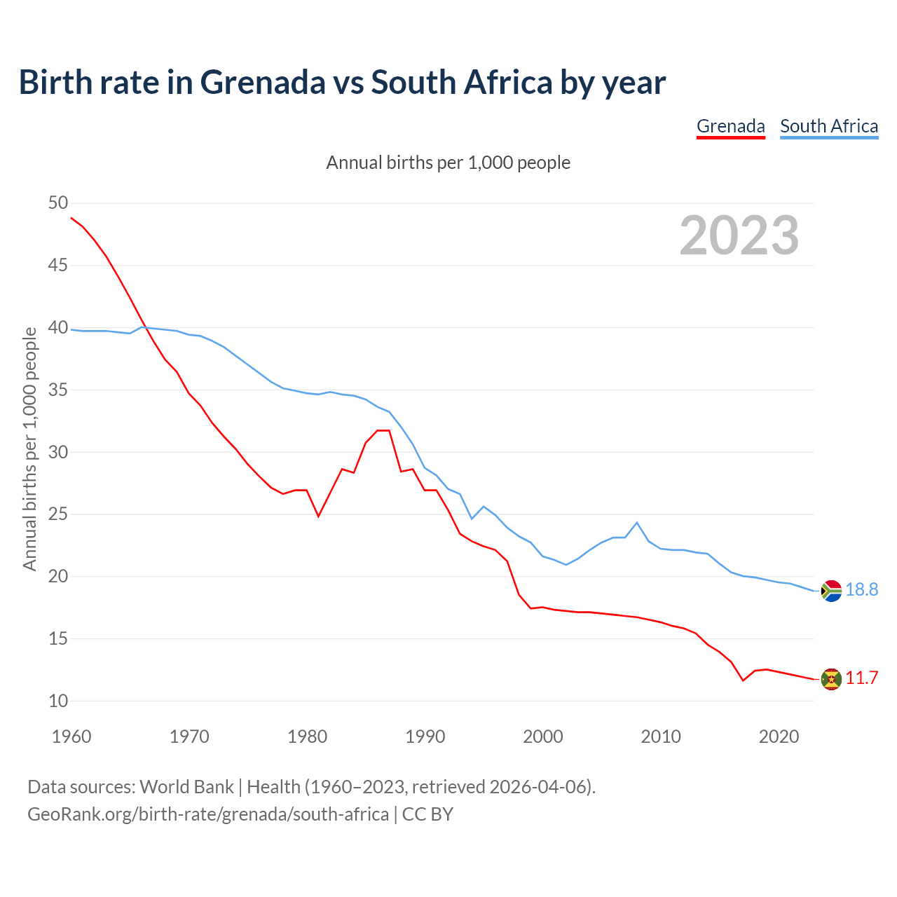 GeoRank.org/birth-rate/grenada/south-africa | CC BY