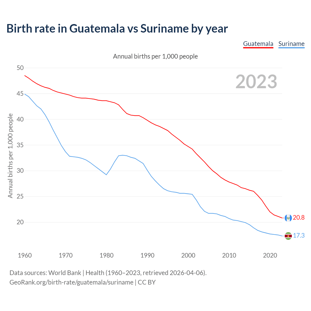 GeoRank.org/birth-rate/guatemala/suriname | CC BY