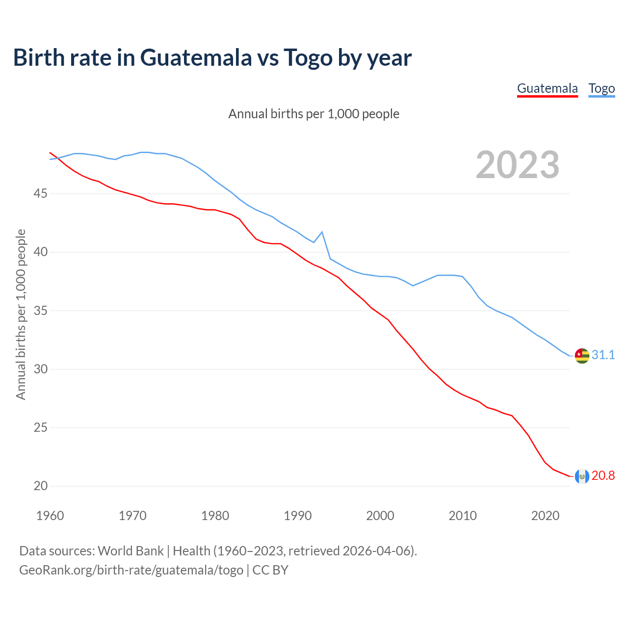 GeoRank.org/birth-rate/guatemala/togo | CC BY