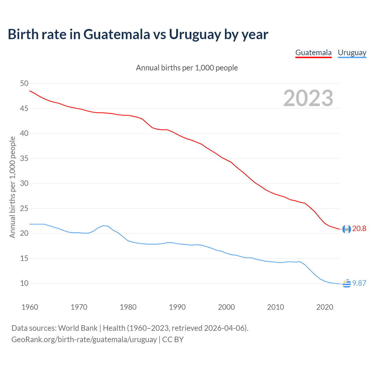 GeoRank.org/birth-rate/guatemala/uruguay | CC BY