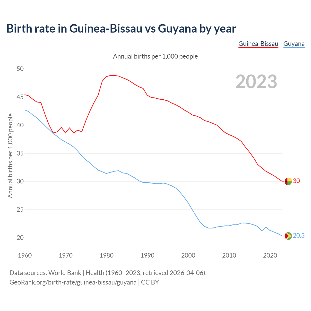 GeoRank.org/birth-rate/guinea-bissau/guyana | CC BY