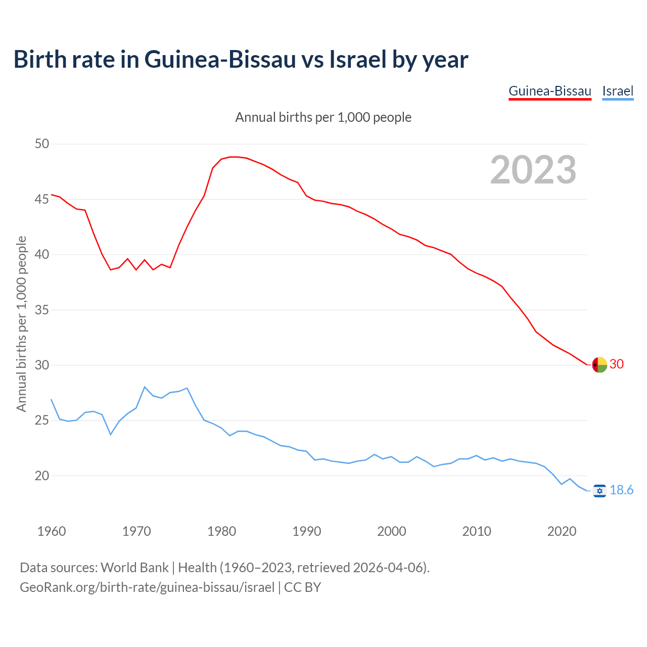 GeoRank.org/birth-rate/guinea-bissau/israel | CC BY