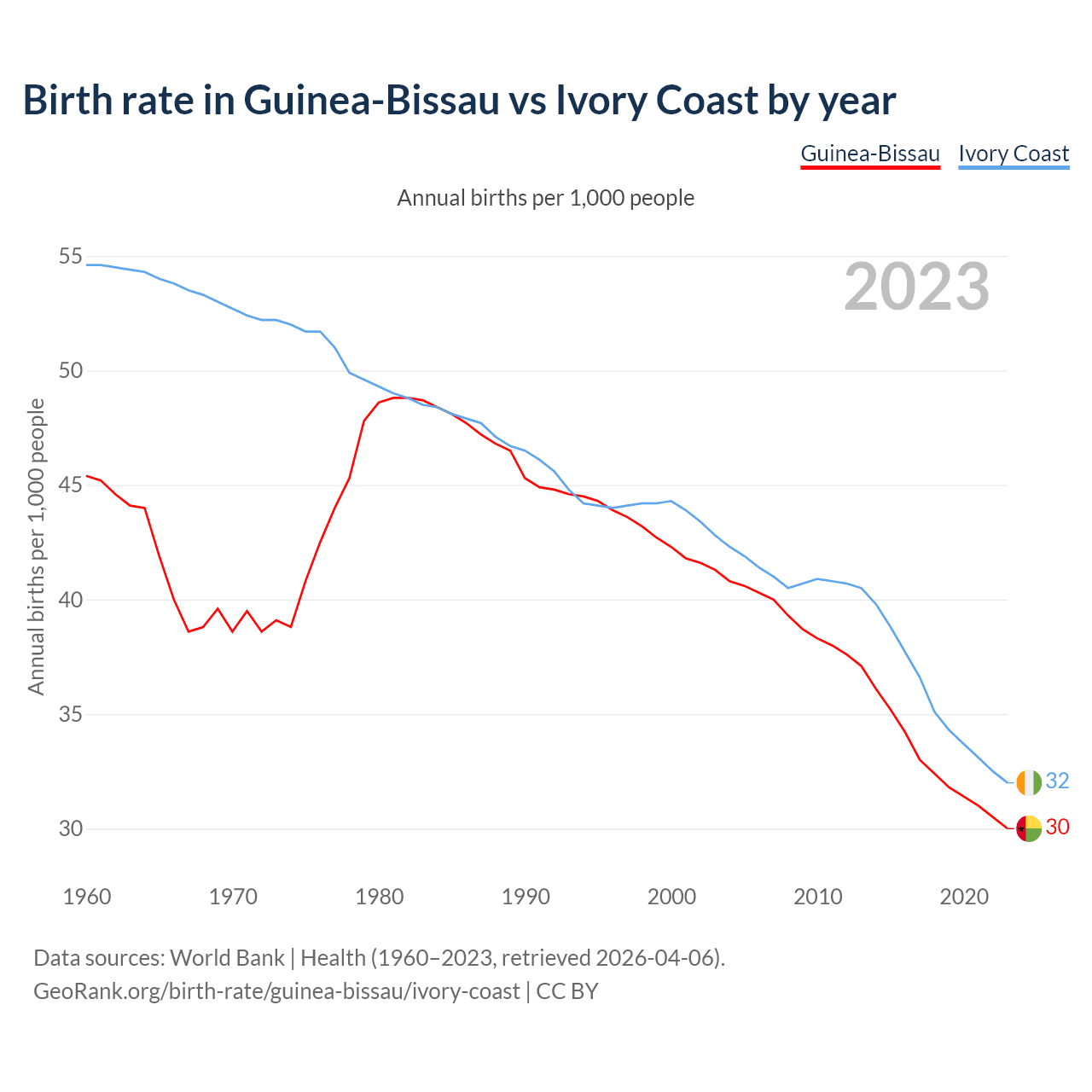 GeoRank.org/birth-rate/guinea-bissau/ivory-coast | CC BY
