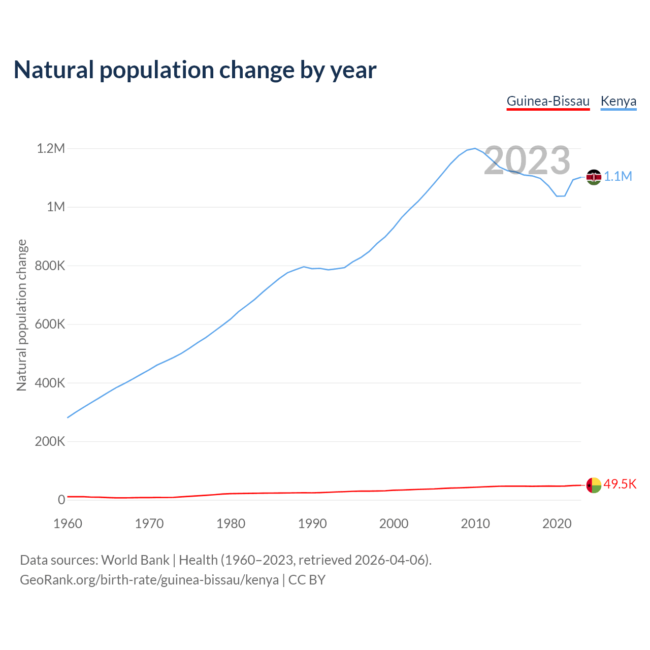Check Guinea-Bissau vs Kenya population clock for a dynamic visualization of the changing population.