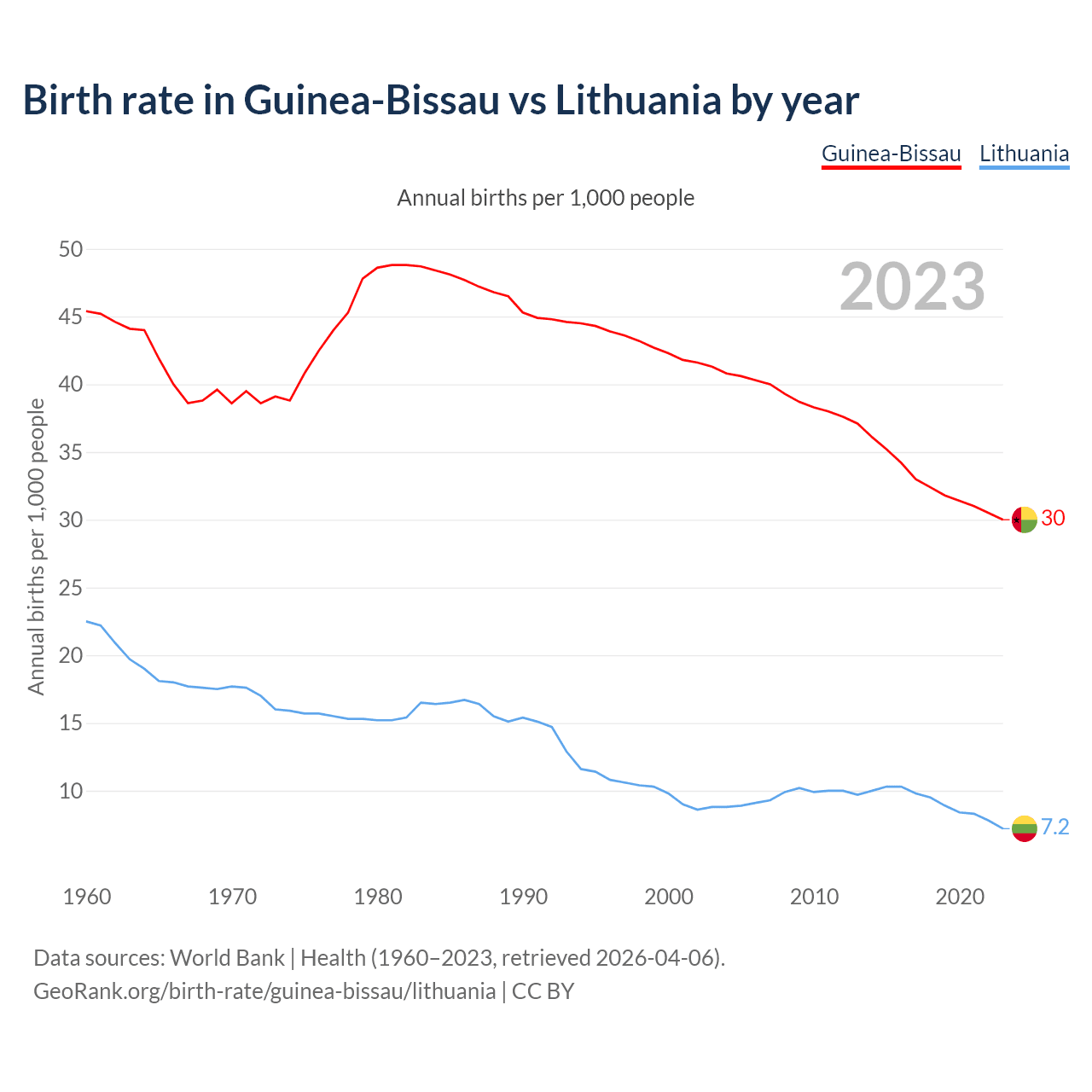 GeoRank.org/birth-rate/guinea-bissau/lithuania | CC BY