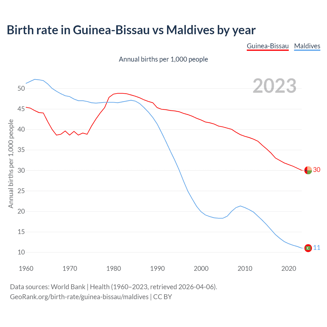 GeoRank.org/birth-rate/guinea-bissau/maldives | CC BY