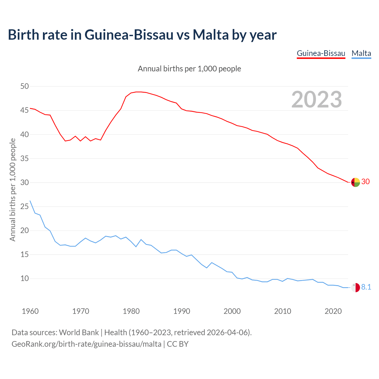 GeoRank.org/birth-rate/guinea-bissau/malta | CC BY