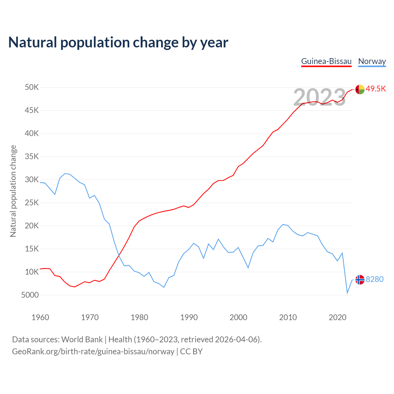 GeoRank.org/birth-rate/guinea-bissau/norway | CC BY