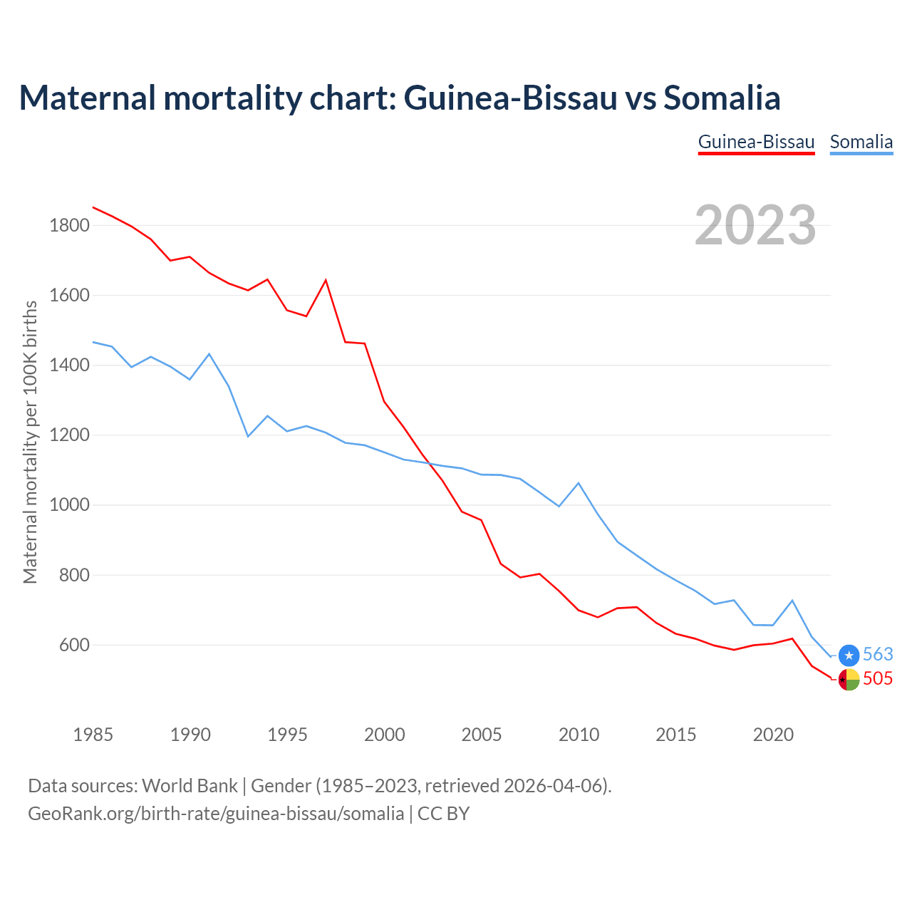 Maternal mortality chart: Guinea-Bissau vs Somalia