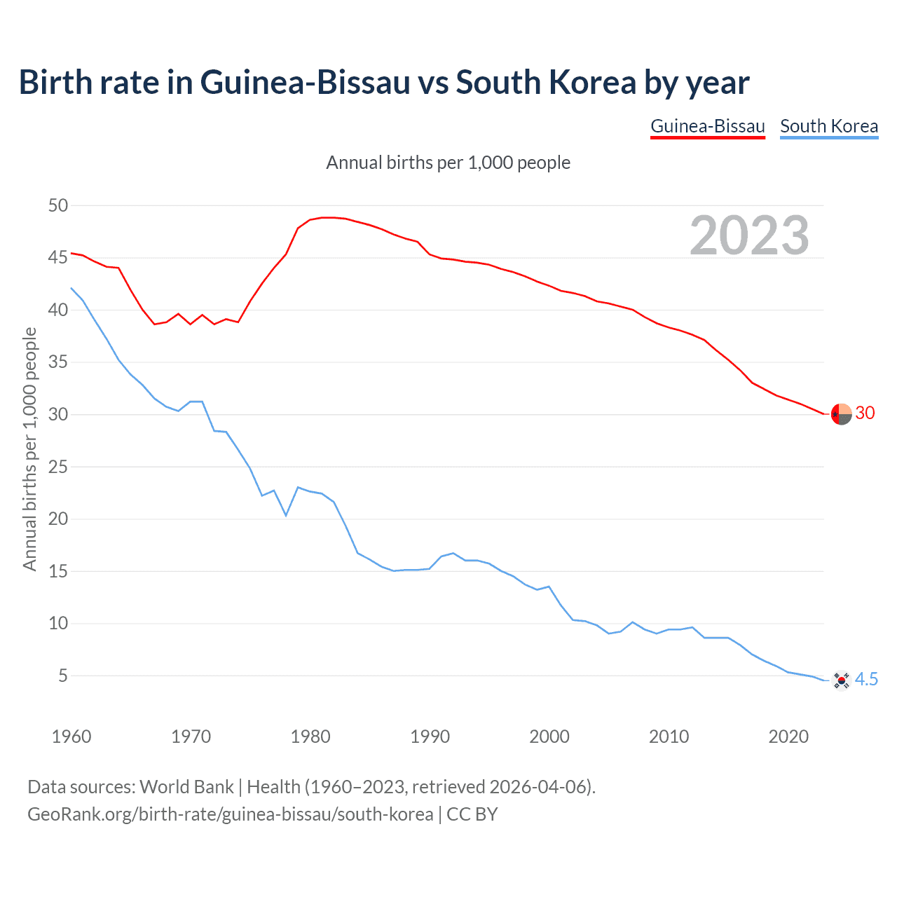 GeoRank.org/birth-rate/guinea-bissau/south-korea | CC BY