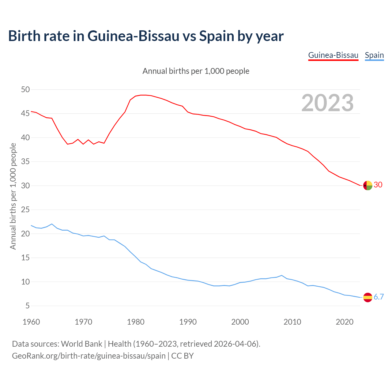 GeoRank.org/birth-rate/guinea-bissau/spain | CC BY