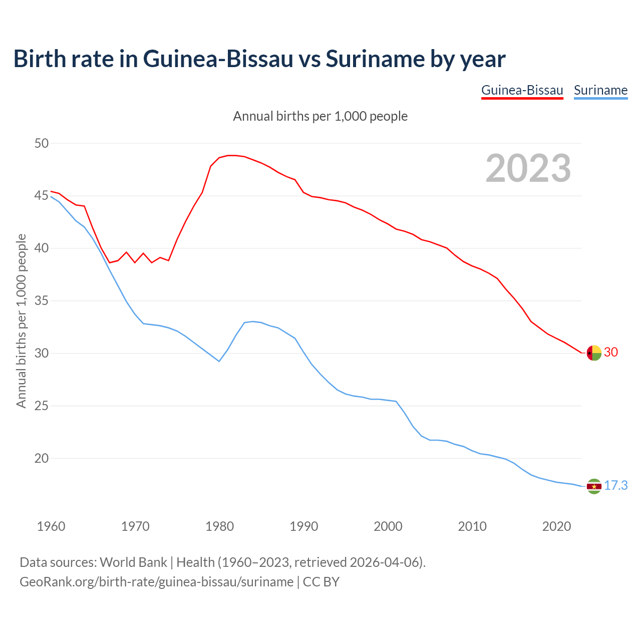 GeoRank.org/birth-rate/guinea-bissau/suriname | CC BY