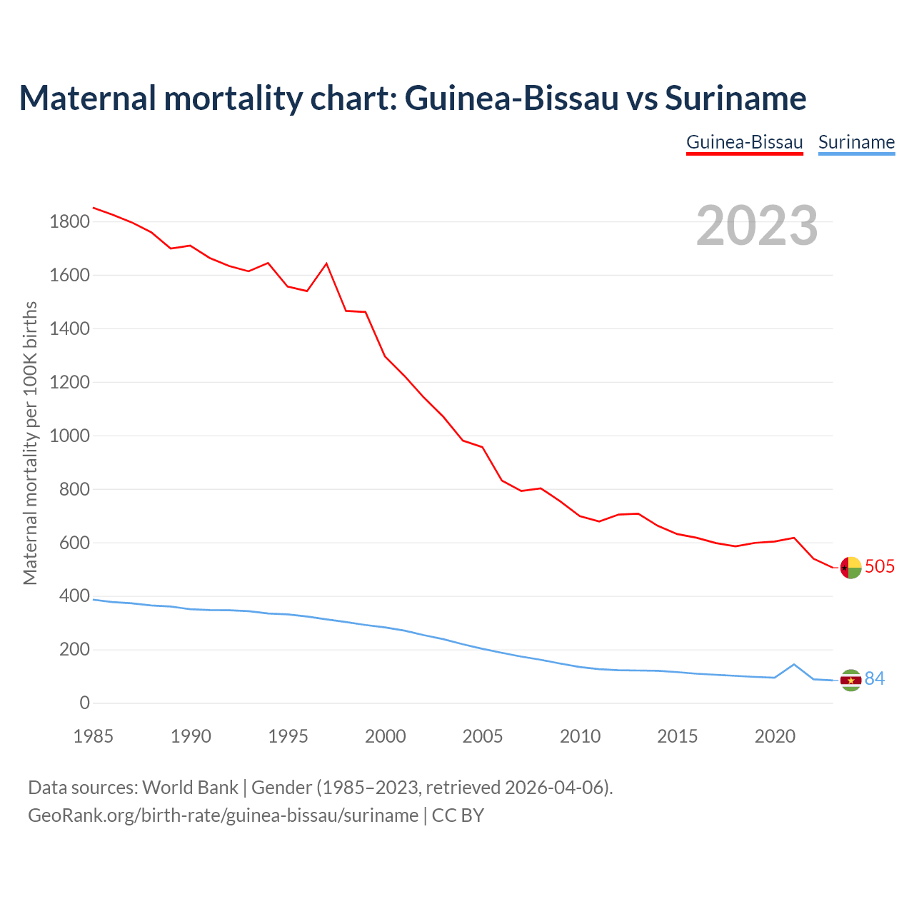 Maternal mortality chart: Guinea-Bissau vs Suriname