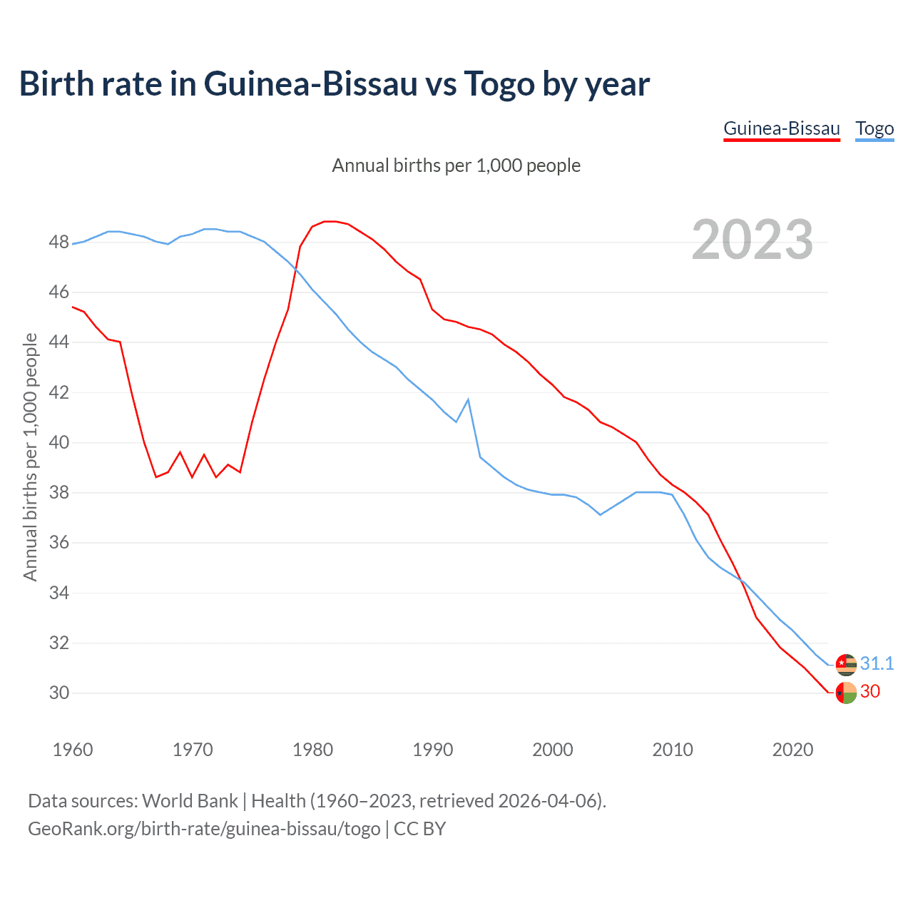 GeoRank.org/birth-rate/guinea-bissau/togo | CC BY