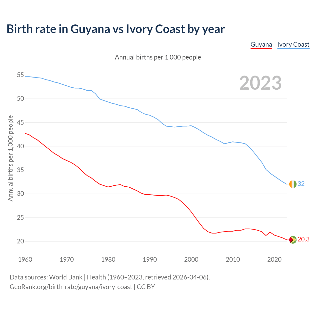 GeoRank.org/birth-rate/guyana/ivory-coast | CC BY