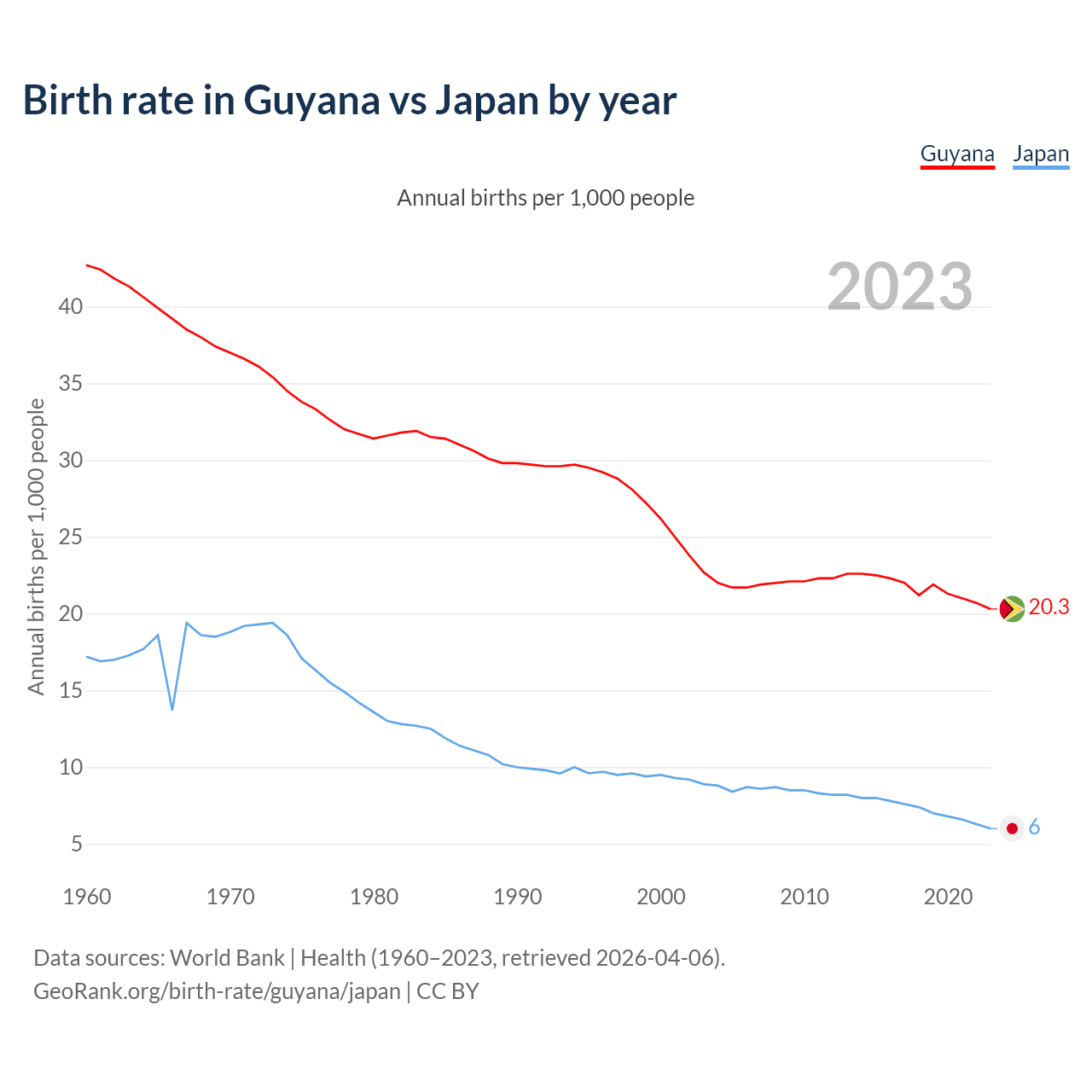 GeoRank.org/birth-rate/guyana/japan | CC BY