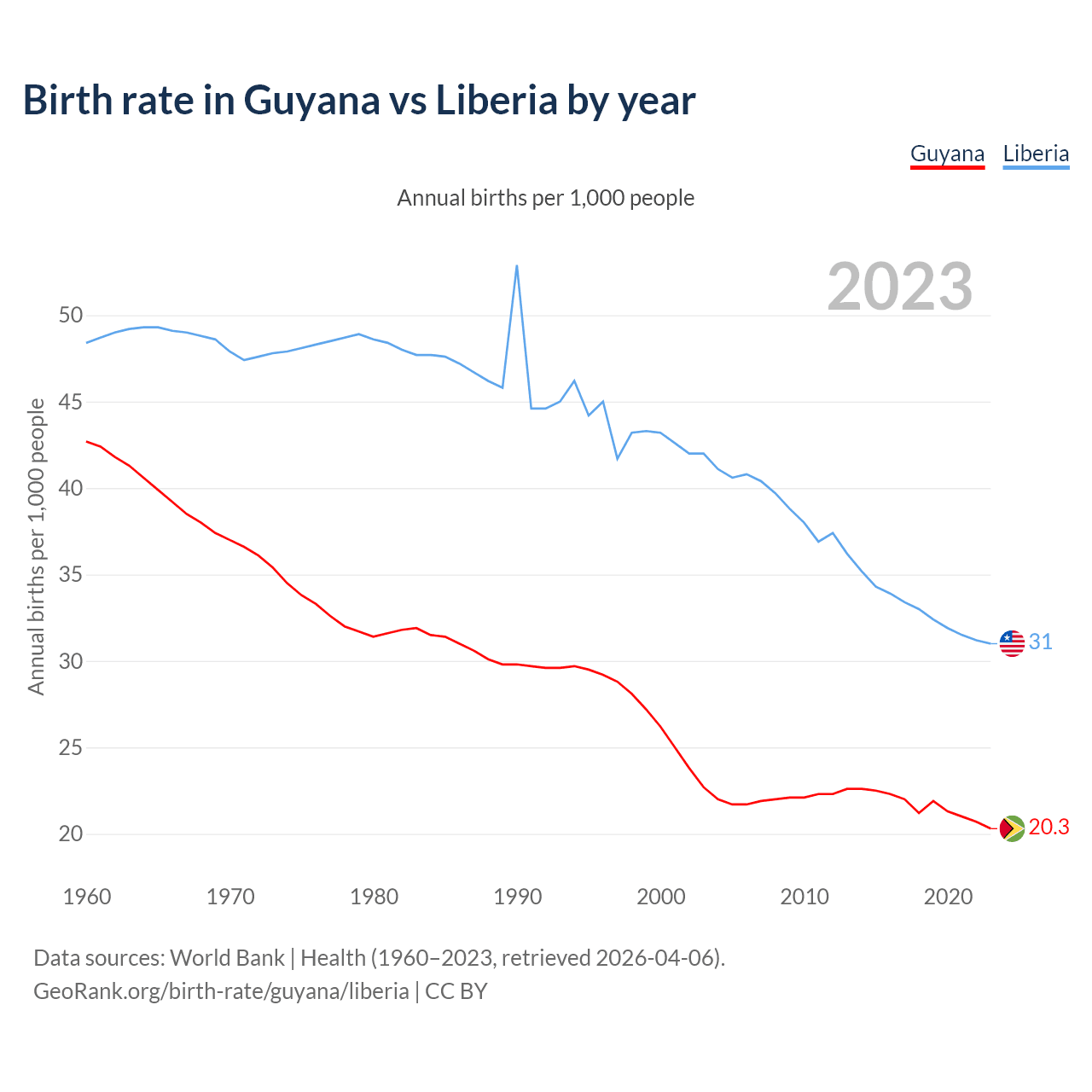 GeoRank.org/birth-rate/guyana/liberia | CC BY