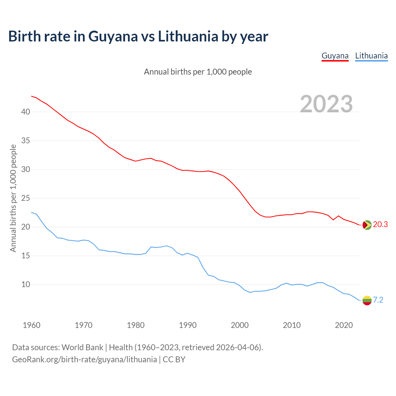 GeoRank.org/birth-rate/guyana/lithuania | CC BY