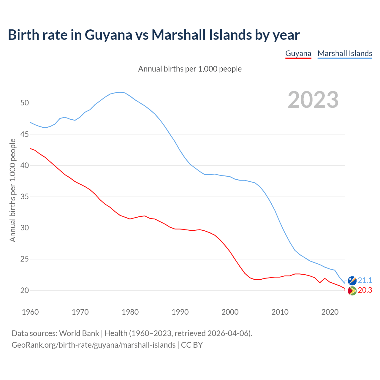 GeoRank.org/birth-rate/guyana/marshall-islands | CC BY