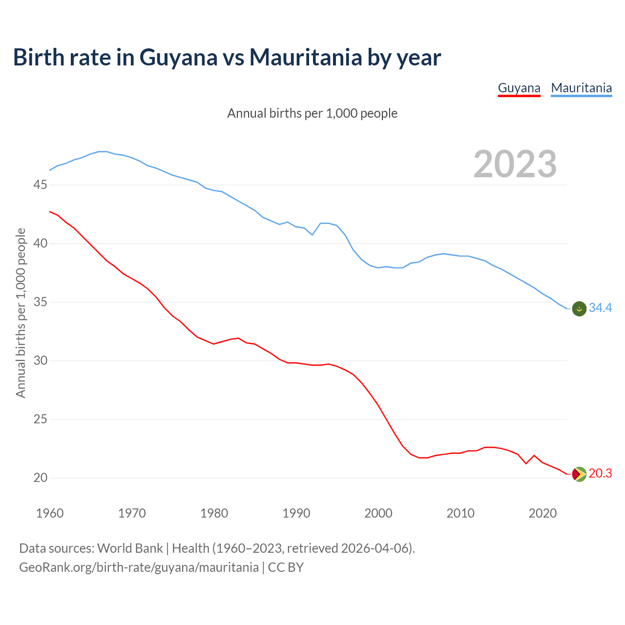 GeoRank.org/birth-rate/guyana/mauritania | CC BY