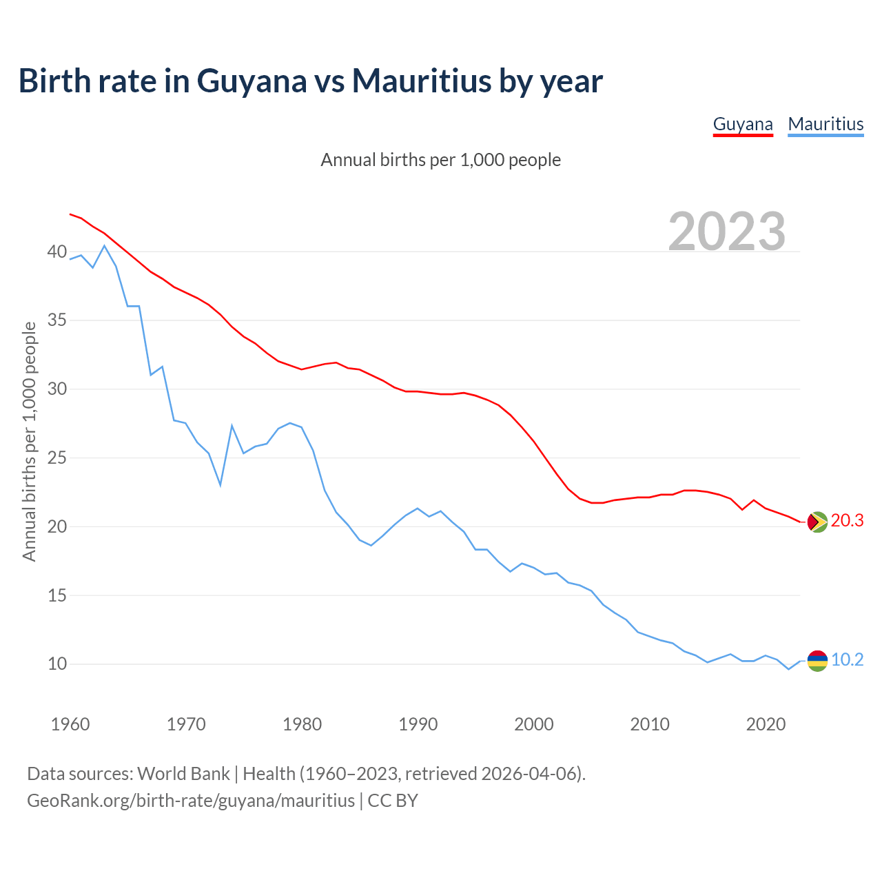 GeoRank.org/birth-rate/guyana/mauritius | CC BY