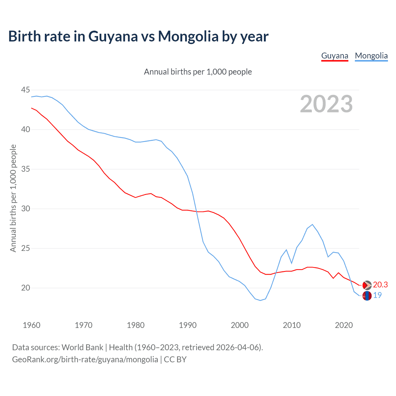 GeoRank.org/birth-rate/guyana/mongolia | CC BY