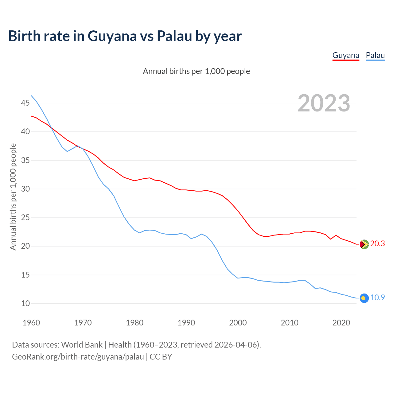 GeoRank.org/birth-rate/guyana/palau | CC BY